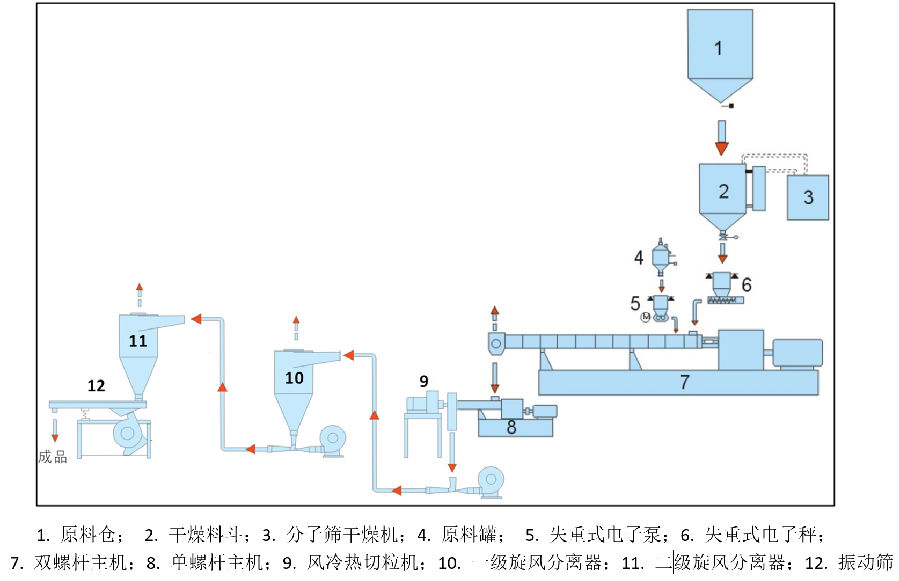 以下是PVC造粒機電纜料造粒生產線的平面設計圖: